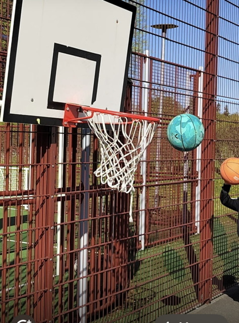 Koripalloa areenalla Vilin ja Luukaksen kanssa.